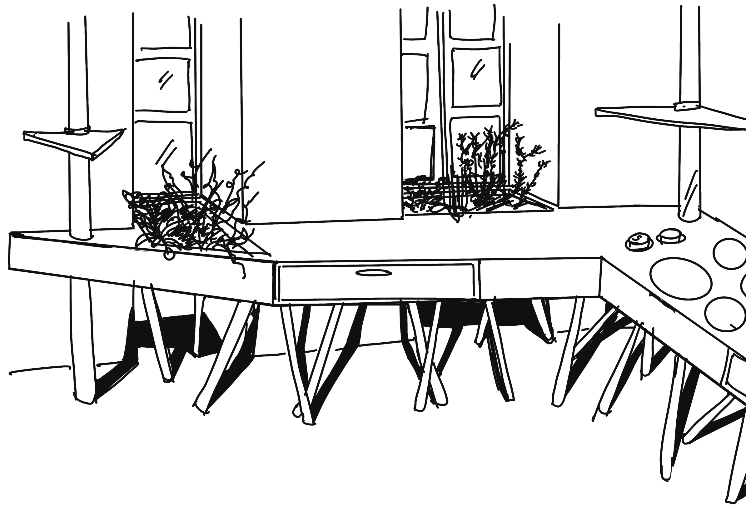 In deieser Aufgabe sollten wir eine Küche für ein bestimmtes Rezept konzipieren, in einem schwierigen Grundriss.