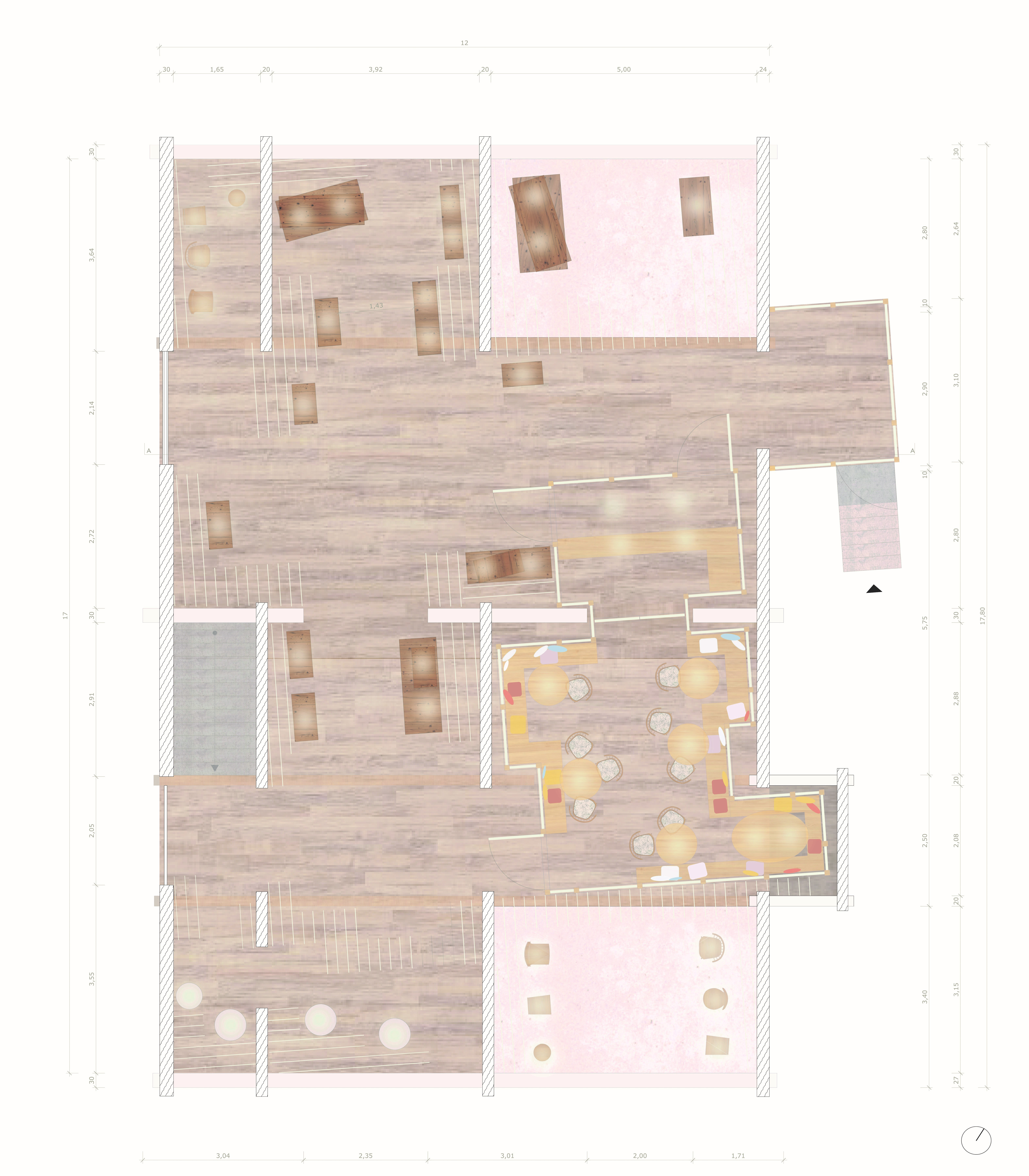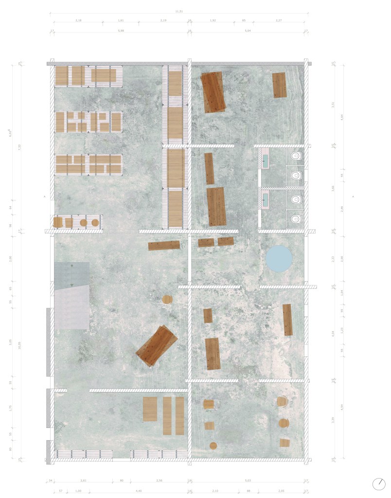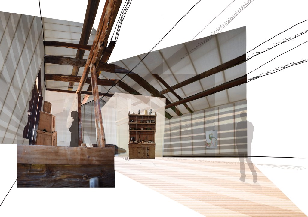 In der Projektaufgabe steht der Entwurf des Raumes im Vordergrund. Im geplanten Umbau ist ein Ort zu schaffen, der die Besucher zum verweilen einlädt und sich idealerweise zu einem weiteren Treffpunkt im Dorf entwickelt. Die räumliche Anordnung, der Bezug zum Bestand, die Farb und Materialwahl und deren Bearbeitung, so wie die Setzung und Wahl des Kunstlichts spielen dabei eine grosse Rolle. Es ist ein Ausstellungsraum mit Café zu entwerfen,
